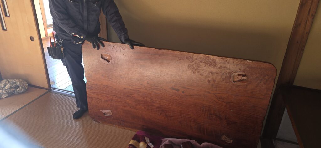 瞬時に取り外し!脚と天板をバラバラにして 、安全に搬出できる状態に解体しました🪚