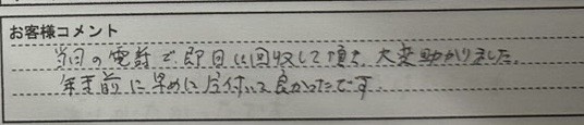 【 当日の電話で即日に回収して頂き、大変助かりました。