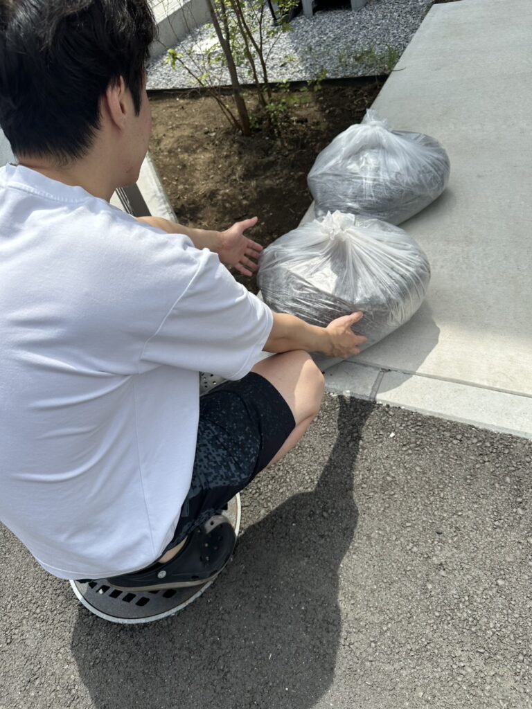 「週末に家内から外まで断捨離・整理整頓をしていて、庭からも土、砂利がたくさんでてきたので、この土嚢袋と砂利を、今日中に処分したいのですが…」