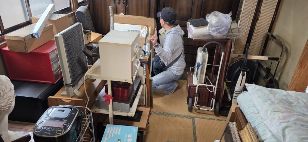 生活雑貨、衣類、段ボールなど、和室2部屋分)